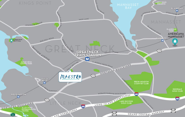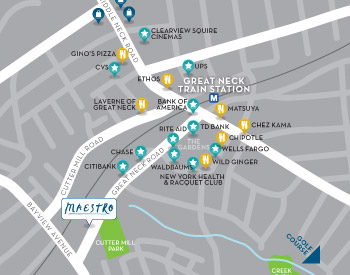 Maestro, poignantly located within walking distance to the best of Great Necks amenities, provides unmatched ease and accessibility. Whether running errands or going out for a stroll through town, Maestro is walking distance to everything you want, including banks, grocery stores, pharmacies, restaurants, shops and the cinema.